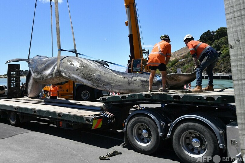 死んだクジラを一目見ようと人だかり、クライストチャーチではまれ NZ