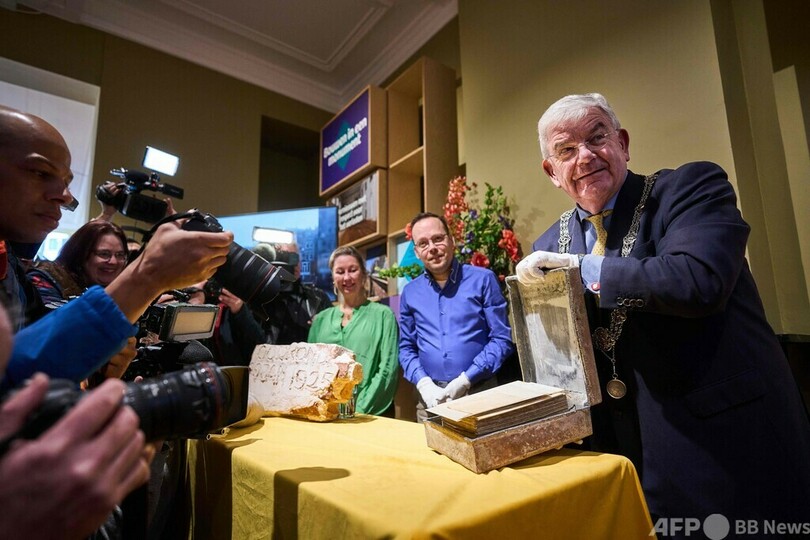 【1月30日 AFP】オランダ・ハーグ(The Hague)で29日、99年前にオランダ王ウィレム2世(William II)の像の下に隠されたタイムカプセルの中身が公開された。古い文書やナポレオン(Napoleon)との戦いに関する本が入っていた。