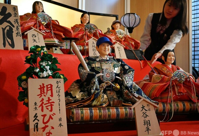 【1月31日 AFP】都内の人形専門店「久月(Kyugetsu)」で31日、「今年の期待びな」として、今季から米大リーグ(MLB)のロサンゼルス・ドジャース(Los Angeles Dodgers)に加入した大谷翔平(Shohei Ohtani)や陸上女子やり投げの北口榛花(Haruka Kitaguchi)をモチーフにした人形が披露された。(c)AFP