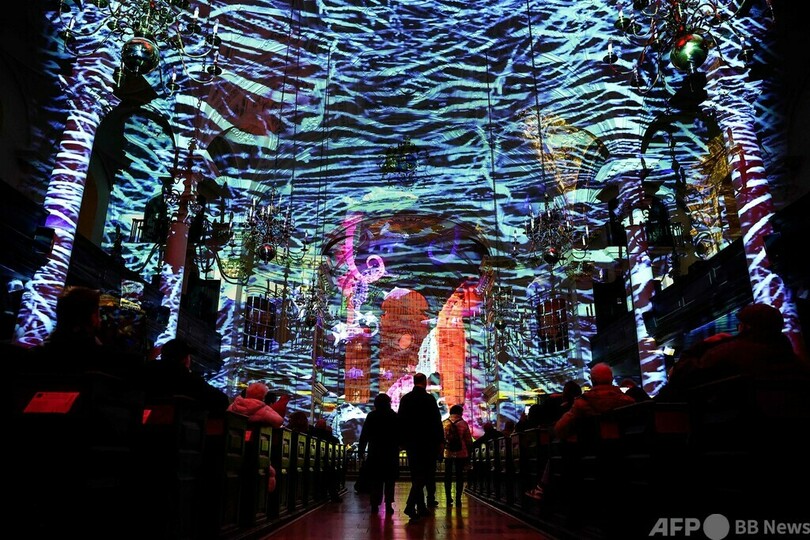 【2月2日 AFP】英ロンドン中心部にあるセント・マーティン・イン・ザ・フィールズ教会(St. Martin-in-the-Fields Church)で、ランドスケープデザイナー、ピーター・ウォーカー(Peter Walker)氏らによる音と光のショー「ライフ(LIFE)」が開催されている。