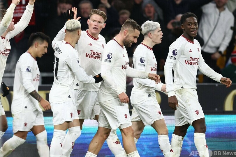 【2月2日 AFP】23-24イングランド・プレミアリーグは1日、第22節の試合が行われ、マンチェスター・ユナイテッド(Manchester United)は後半アディショナルタイム7分にコビー・メイヌー(Kobbie Mainoo)が決勝点を挙げ、2点のリードをふいにしながらもウォルバーハンプトン・ワンダラーズ(Wolverhampton Wanderers)から4‐3の劇的勝利を飾った。