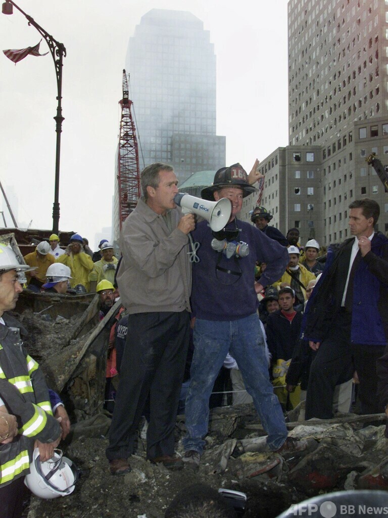 事件から3日後の9月14日、現地を訪れたブッシュ大統領は消防隊のヘルメットをかぶったベックウィズ氏の肩に手を回し、メガホンで演説した。この姿を捉えた写真は、911を象徴する1枚となった。