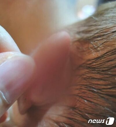 生後19日の新生児の耳たぶが破れている様子=MBC(c)news1