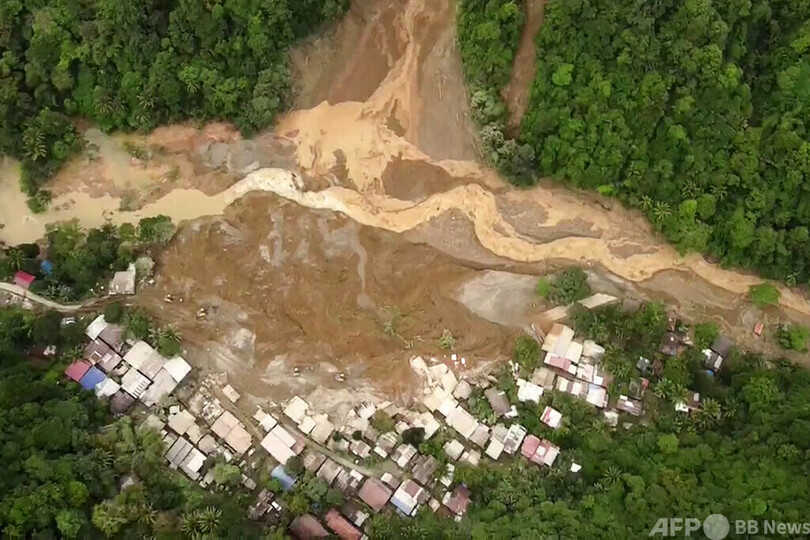 6日夜に発生した土砂崩れは村の家屋を破壊し、鉱山労働者を乗せたバス3台などを飲み込んだ。