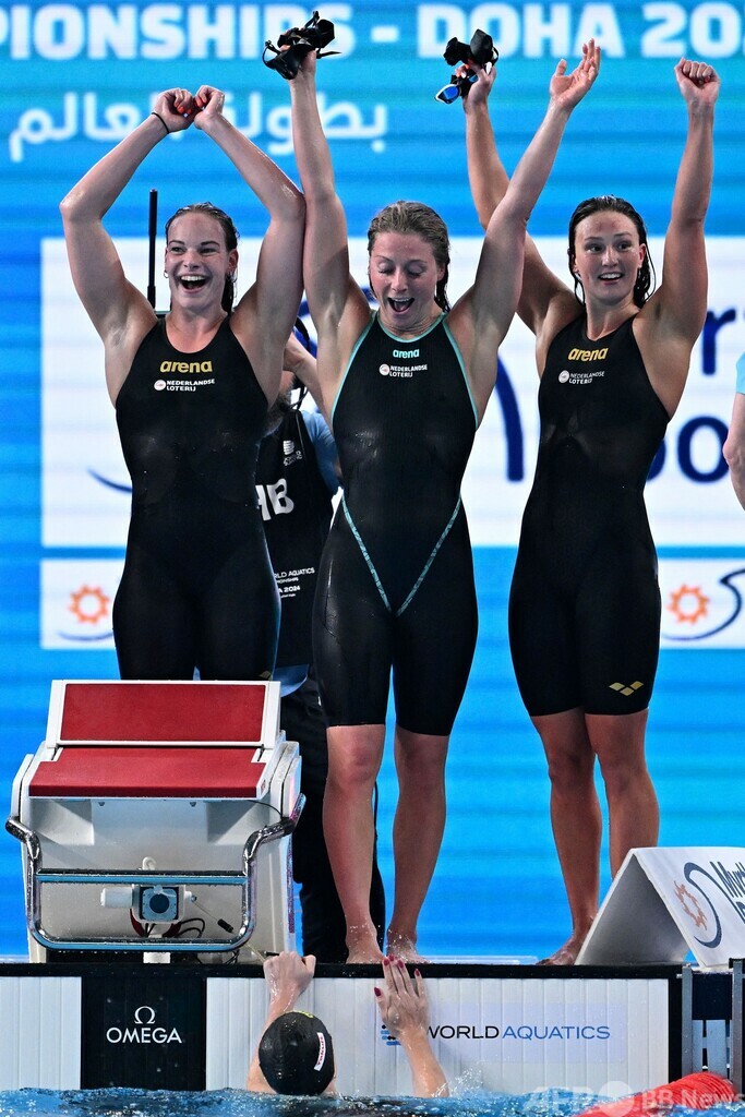 女子4×100メートル自由形リレー決勝はオランダが3分36秒61で制し、オーストラリアが0秒32差で2位、カナダが3位に入った。