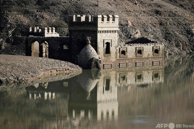 【2月14日 AFP】スペイン北東部カタルーニャ(Catalonia)自治州ビラノバデサウ(Vilanova de Sau)では、貯水池の水位が低下したため、水没していたサンロマデサウ(Sant Roma de Sau)村の工場が一部が出現している。