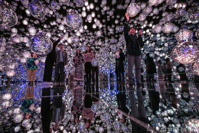 A shifting vortex of spotlights and a mirror room filled with ethereal "wobbling" orbs are among the brand-new artworks at the "teamLab Borderless" permanent exhibition, which opened last week.