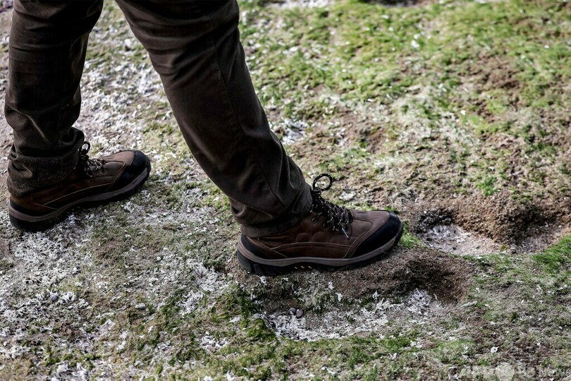 【2月20日 AFP】モロッコ北部タンジール(Tangier)の南約90キロのララシュ(Larache)の海岸沿いに発見された古代の足跡のそばを歩く男性。足跡は10万年以上前の現生人類ホモ・サピエンス(Homo Sapiens)が残したものとみられている。同国の考古学者たちはこれまでに、北アフリカ最古と思われる10万年以上前の人類の足跡を80以上発掘した。子どもとみられるものを含む5人のホモ・サピエンスが残したとされる足跡は、モロッコ、スペイン、フランス、ドイツの考古学者によってララシュの海岸で発見された。(c)AFP