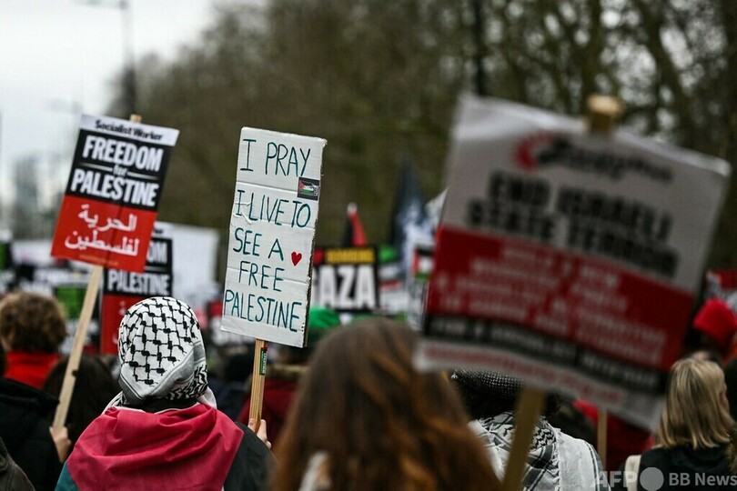 【2月18日 AFP】英ロンドンで17日、数万人規模の親パレスチナデモが行われ、人種的憎悪の扇動や警察官への暴行などの容疑で12人が逮捕された。
