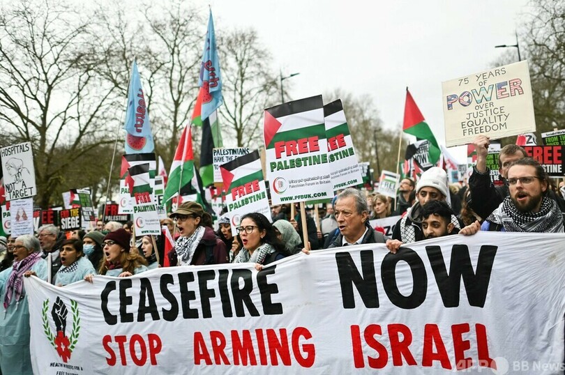【2月18日 AFP】英ロンドンで17日、数万人規模の親パレスチナデモが行われ、人種的憎悪の扇動や警察官への暴行などの容疑で12人が逮捕された。