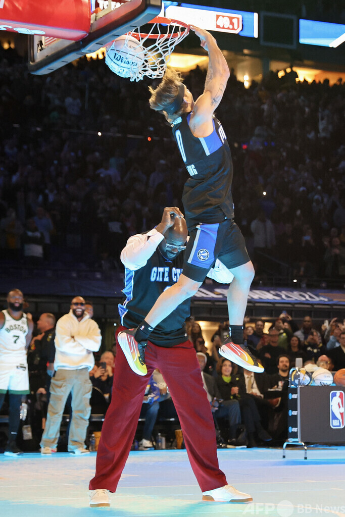 ダンクコンテストでも、マック・マクラング(Mac McClung)が連覇を果たした。オーランド・マジック(Orlando Magic)傘下のGリーグチームでプレーするマクラングは、NBAのレジェンドであるシャキール・オニール(Shaquille O'Neal)氏を跳び越えて両手でリバースダンクを決め、ボストン・セルティックス(Boston Celtics)のジェイレン・ブラウン(Jaylen Brown)との決勝を制した。