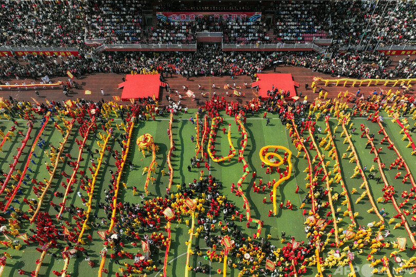【2月21日 東方新報】中国・貴州省(Guizhou)銅仁市(Tongren)石阡(せきせん)県の体育場で20日、「コーラオ族毛龍節」が開催された。78チームのコーラオ毛龍が新春を祝うパフォーマンスを披露し、新年を祝った。