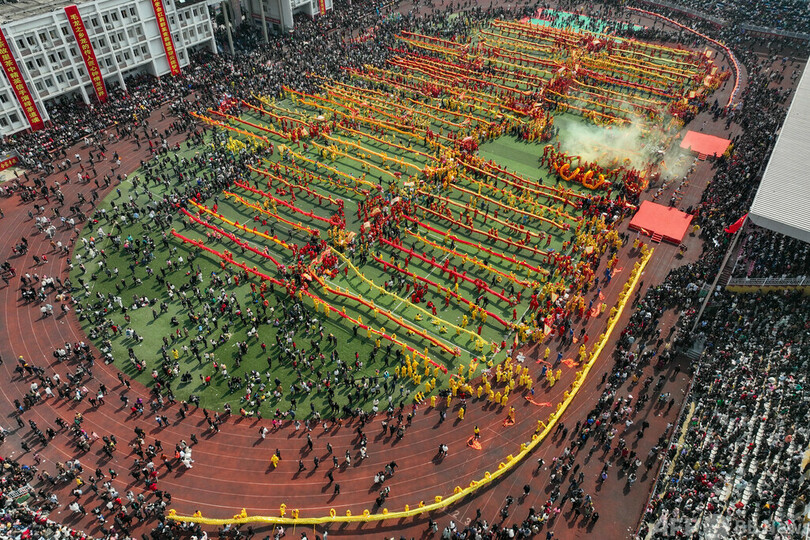 【2月21日 東方新報】中国・貴州省(Guizhou)銅仁市(Tongren)石阡(せきせん)県の体育場で20日、「コーラオ族毛龍節」が開催された。78チームのコーラオ毛龍が新春を祝うパフォーマンスを披露し、新年を祝った。