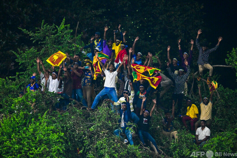 【今日の1枚】クリケット観戦者が熱狂、重さに耐える木の枝 スリランカ