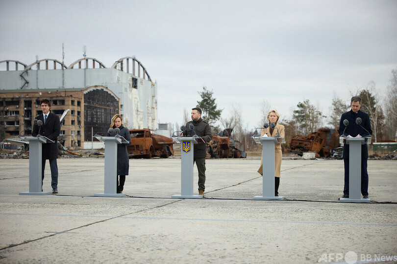 欧州連合(EU)のウルズラ・フォンデアライエン(Ursula von der Leyen)欧州委員長、カナダのジャスティン・トルドー(Justin Trudeau)首相、イタリアのジョルジャ・メローニ(Giorgia Meloni)首相はキーウを訪れ、ゼレンスキー氏と行動を共にした。