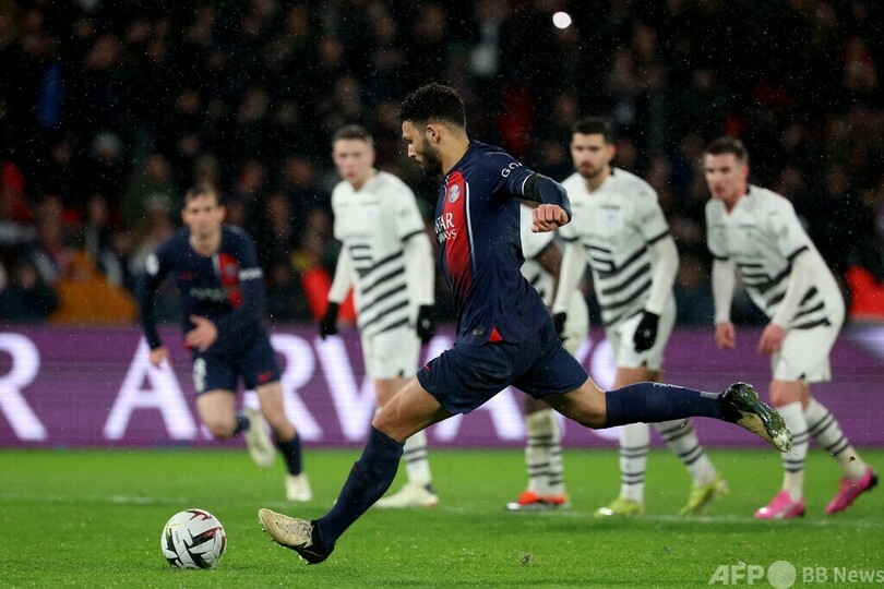 【2月26日 AFP】23-24フランス・リーグ1は25日、第23節の試合が行われ、首位パリ・サンジェルマン(Paris Saint-Germain、PSG)はゴンサロ・ラモス(Goncalo Ramos)がラストプレーでのPKを決め、難敵レンヌ(Stade Rennes FC)と1-1で引き分けた。