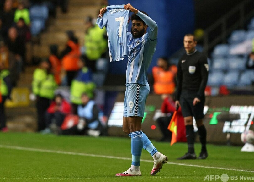 【2月27日 AFP】イングランドFAカップ(FA Cup 2023-24)は26日、5回戦が行われ、2部コベントリー・シティ(Coventry City)は6部メイドストーン・ユナイテッド(Maidstone United)に5‐0で勝利し、準々決勝進出を決めた。ハットトリックを達成したエリス・シムズ(Ellis Simms)は、ゴール後に負傷中の坂元達裕(Tatsuhiro Sakamoto)のユニホームを掲げて得点を喜んだ。