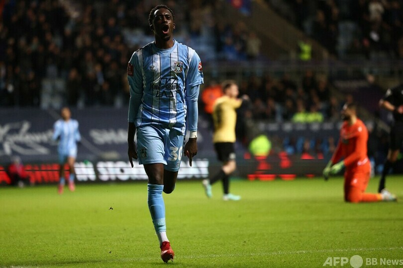 【2月27日 AFP】イングランドFAカップ(FA Cup 2023-24)は26日、5回戦が行われ、2部コベントリー・シティ(Coventry City)は6部メイドストーン・ユナイテッド(Maidstone United)に5‐0で勝利し、準々決勝進出を決めた。ハットトリックを達成したエリス・シムズ(Ellis Simms)は、ゴール後に負傷中の坂元達裕(Tatsuhiro Sakamoto)のユニホームを掲げて得点を喜んだ。