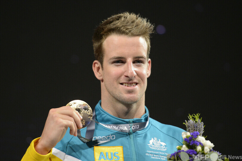 世界水泳選手権(World Aquatics Championships)の競泳男子100メートル自由形で2011、13年に連覇を達成したジェームズ・マグヌッセン(James Magnussen、オーストラリア)氏は、同大会に参加する初のビッグネームとなっている。(c)AFP/Luke PHILLIPS