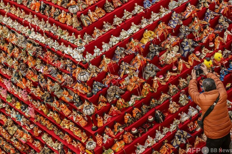 【3月3日 AFP】埼玉県鴻巣市のショッピングモールに、3日のひな祭りに合わせ巨大なひな壇が登場した。