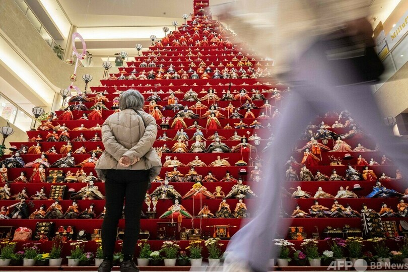 【3月3日 AFP】埼玉県鴻巣市のショッピングモールに、3日のひな祭りに合わせ巨大なひな壇が登場した。
