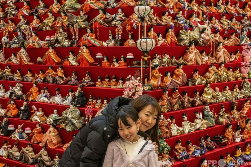 【3月3日 AFP】埼玉県鴻巣市のショッピングモールに、3日のひな祭りに合わせ巨大なひな壇が登場した。