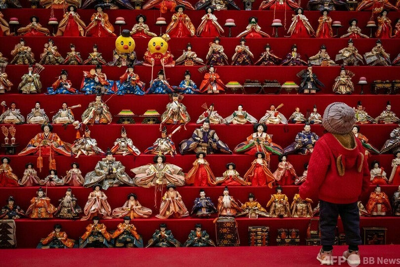 【3月3日 AFP】埼玉県鴻巣市のショッピングモールに、3日のひな祭りに合わせ巨大なひな壇が登場した。
