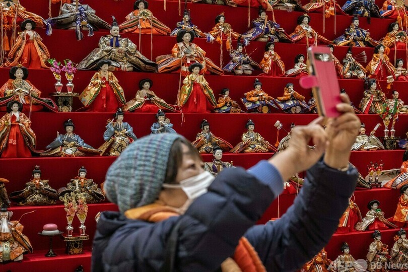 【3月3日 AFP】埼玉県鴻巣市のショッピングモールに、3日のひな祭りに合わせ巨大なひな壇が登場した。