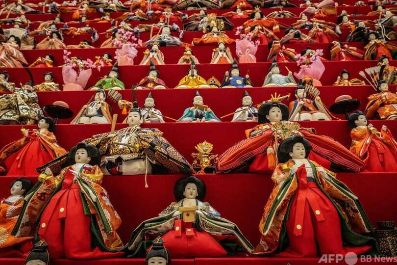 【3月3日 AFP】埼玉県鴻巣市のショッピングモールに、3日のひな祭りに合わせ巨大なひな壇が登場した。