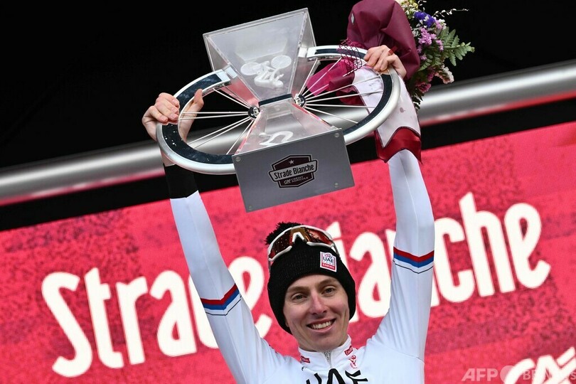 【3月3日 AFP】自転車ロードレースのストラーデ・ビアンケ(Strade Bianche 2024)が2日、イタリア・シエナ(Siena)からシエナまでの215キロで行われ、UTE(UAE TEAM EMIRATES)のタデイ・ポガチャル(Tadej Pogacar、スロベニア)が残り81キロで単独のアタックを仕掛けて優勝を飾った。