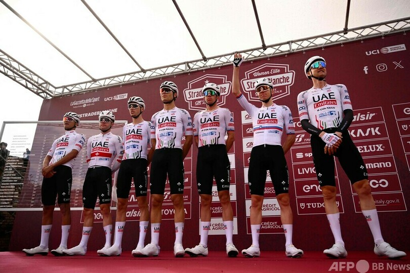 【3月3日 AFP】自転車ロードレースのストラーデ・ビアンケ(Strade Bianche 2024)が2日、イタリア・シエナ(Siena)からシエナまでの215キロで行われ、UTE(UAE TEAM EMIRATES)のタデイ・ポガチャル(Tadej Pogacar、スロベニア)が残り81キロで単独のアタックを仕掛けて優勝を飾った。
