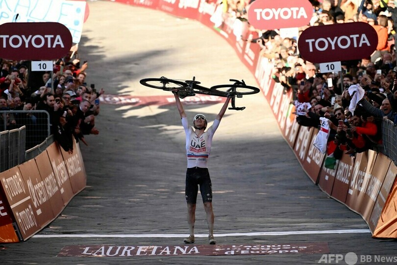 【3月3日 AFP】自転車ロードレースのストラーデ・ビアンケ(Strade Bianche 2024)が2日、イタリア・シエナ(Siena)からシエナまでの215キロで行われ、UTE(UAE TEAM EMIRATES)のタデイ・ポガチャル(Tadej Pogacar、スロベニア)が残り81キロで単独のアタックを仕掛けて優勝を飾った。