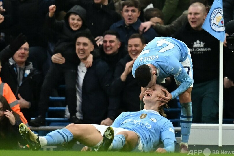 【3月4日 AFP】23-24イングランド・プレミアリーグは3日、第27節の試合が行われ、マンチェスター・シティ(Manchester City) はフィル・フォーデン(Phil Foden)の2ゴールで逆転し、マンチェスター・ユナイテッド(Manchester United)とのダービーに3-1で勝利した。