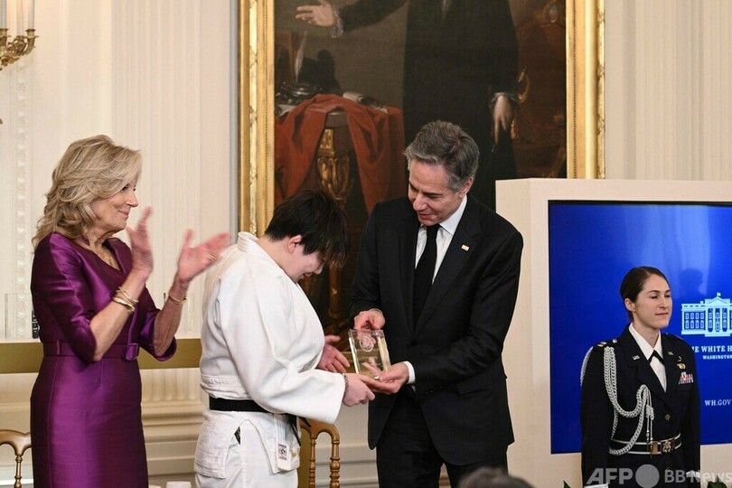 【3月5日 AFP】米首都ワシントンのホワイトハウス(White House)で4日、人権擁護や女性の地位向上など、社会に貢献した世界の女性をたたえる「世界の勇気ある女性賞(International Women of Courage Award、IWOC)」の授賞式が行われ、日本の元陸上自衛官、五ノ井里奈(Rina Gonoi)さんらが出席した。