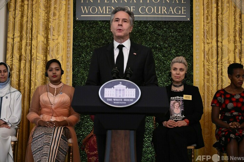 【3月5日 AFP】米首都ワシントンのホワイトハウス(White House)で4日、人権擁護や女性の地位向上など、社会に貢献した世界の女性をたたえる「世界の勇気ある女性賞(International Women of Courage Award、IWOC)」の授賞式が行われ、日本の元陸上自衛官、五ノ井里奈(Rina Gonoi)さんらが出席した。