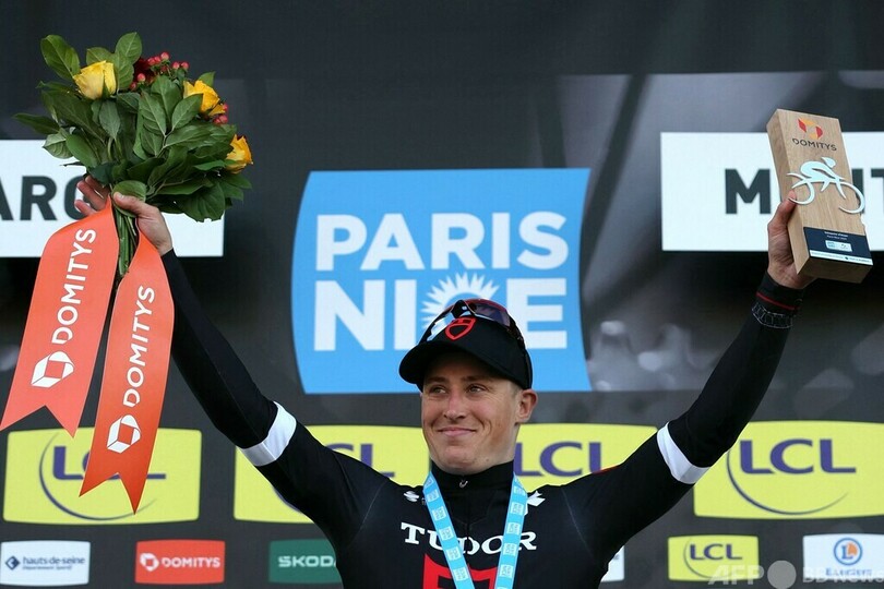 ピシーは、第1ステージを制したチーム・ビスマ・リースアバイク(Team Visma | Lease a Bike)のオラフ・コーイ(Olav Kooij、オランダ)、2位に入ったリドル・トレック(Lidl Trek)のマッズ・ピーダスン(Mads Pedersen、デンマーク)と同タイムながら総合首位に浮上し、マイヨ・ジョーヌ(イエロージャージー)を獲得している。(c)AFP