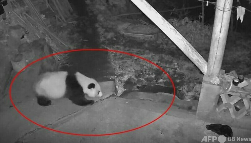 中国四川省 野生ジャイアントパンダが夜に村人の家を「訪問」