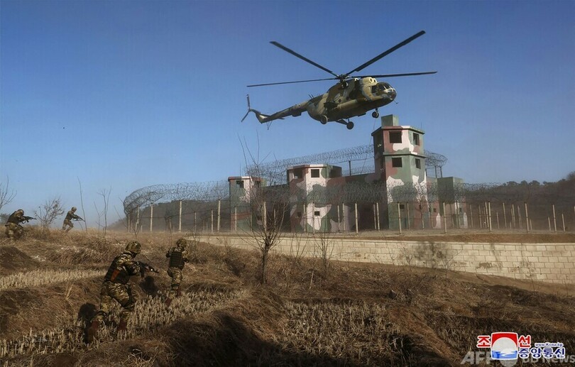 【3月7日 AFP】(写真追加)北朝鮮国営の朝鮮中央通信(KCNA)は7日、金正恩(キム・ジョンウン、Kim Jong Un)朝鮮労働党総書記が6日、同国西部の軍訓練施設を視察し、「実戦訓練を強化するよう」指示したと伝えた。