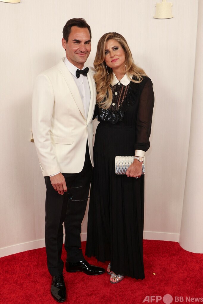 【3月11日 AFP】元男子テニスのロジャー・フェデラー(Roger Federer)氏が10日、米カリフォルニア州ハリウッドで行われた第96回アカデミー賞(Academy Awards)授賞式に出席し、妻のミルカ(Mirka)さんとレッドカーペットに登場した。(c)AFP