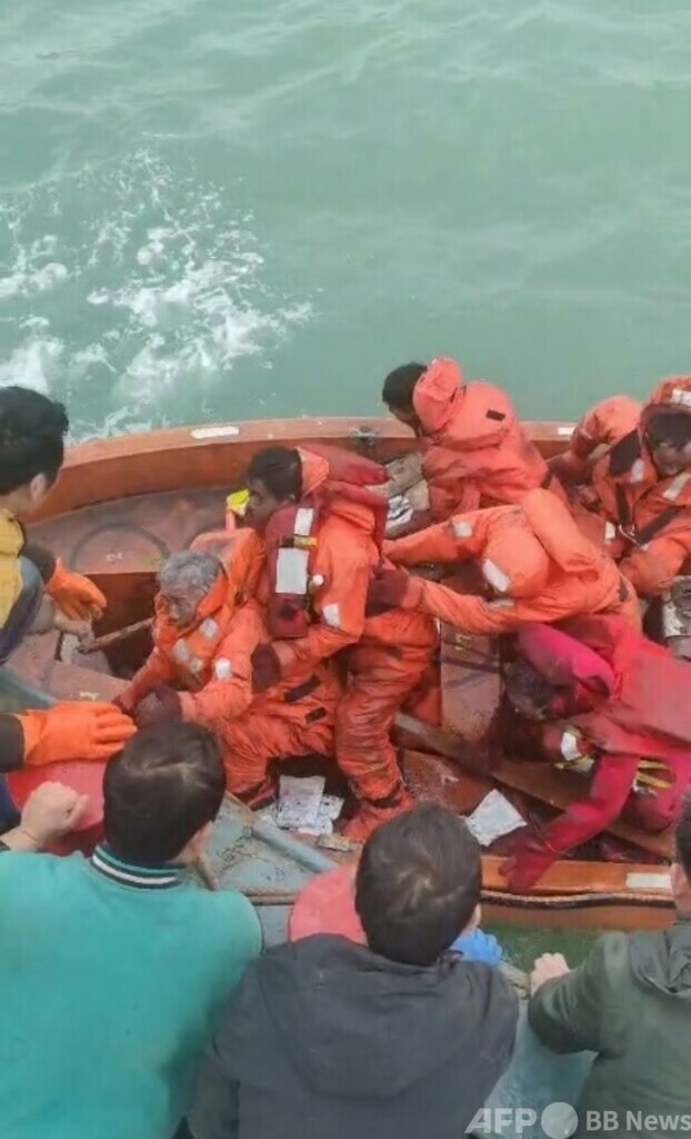偶然にも、沈船長は2021年9月26日、漁獲作業をしていた時、遭難した船員16人を救出したことがあります。沈船長は当時も救助のため、今回と同様に回収中の十数万元(約200万円以上)相当のカニ籠を放棄しました。3年もたたないうち、沈船長は同じ方法で、少しもためらわずに人命救助しました。(c)CGTN Japanese/AFPBB News
