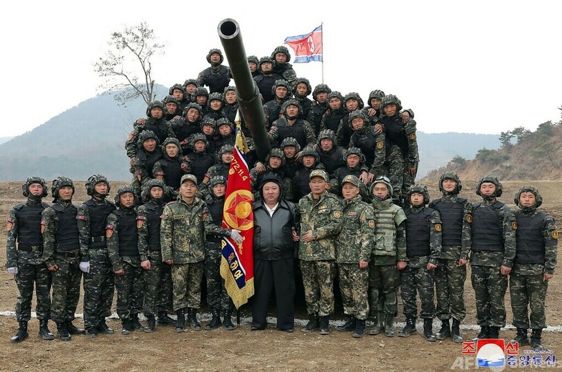 KCNAが公開した画像によると、黒いレザージャケットを着た金氏は、迷彩服を着た兵士らに敬礼し、軍幹部に囲まれて監視台から走行間実弾射撃訓練を視察した。金氏はその後、「自ら新型主力戦車に乗り込み、操縦した」という。