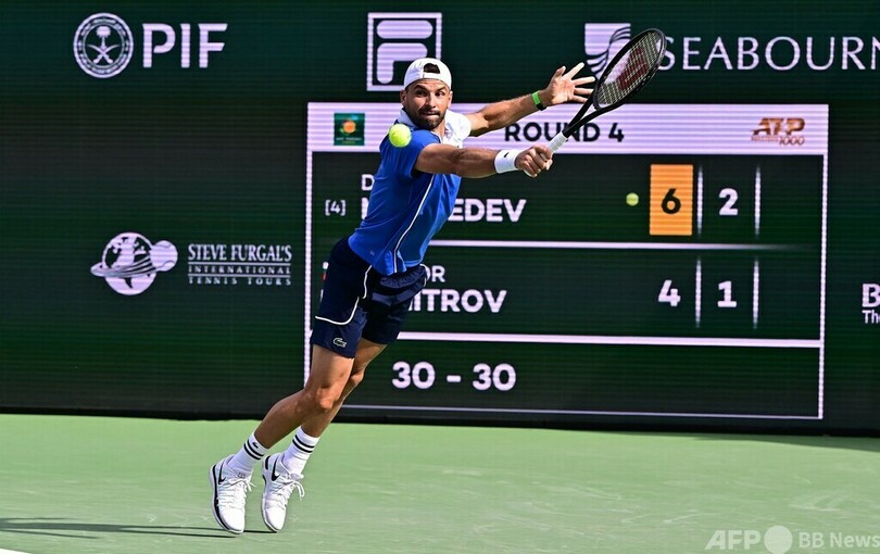 【3月14日 AFP】テニス、BNPパリバ・オープン(BNP Paribas Open 2024)は13日、男子シングルス4回戦が行われ、大会第3シードのダニール・メドベージェフ(Daniil Medvedev)は6-4、6-4で第13シードのグリゴール・ディミトロフ(Grigor Dimitrov、ブルガリア)を下し、準々決勝に進出した。
