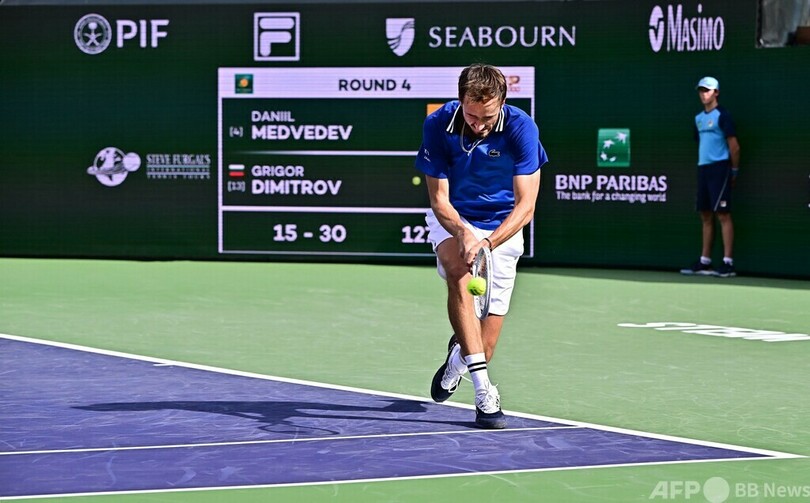 【3月14日 AFP】テニス、BNPパリバ・オープン(BNP Paribas Open 2024)は13日、男子シングルス4回戦が行われ、大会第3シードのダニール・メドベージェフ(Daniil Medvedev)は6-4、6-4で第13シードのグリゴール・ディミトロフ(Grigor Dimitrov、ブルガリア)を下し、準々決勝に進出した。