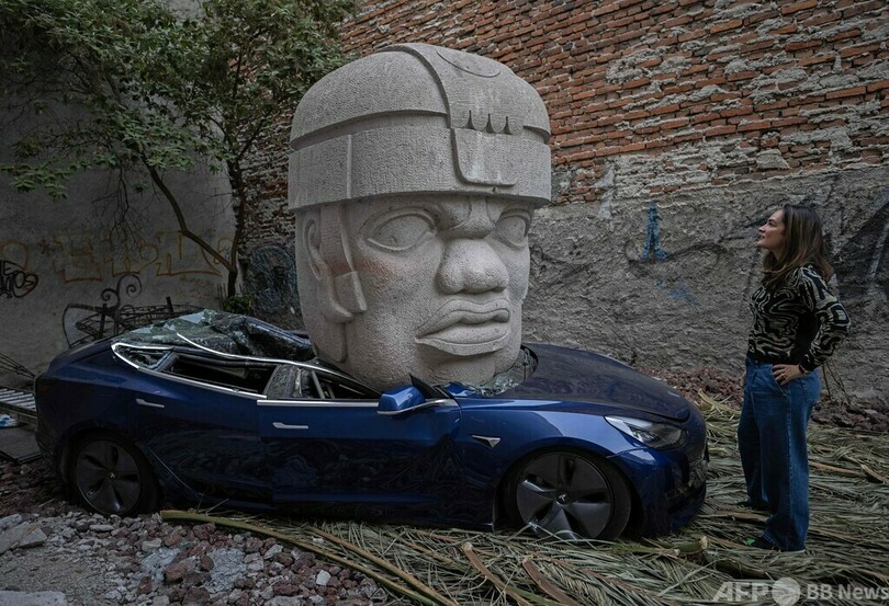 【3月15日 AFP】米電気自動車(EV)大手テスラ(Tesla)の車が、先住民の彫刻のような巨石頭に押しつぶされている──事故現場ではなく、テスラのイーロン・マスク(Elon Musk)最高経営責任者(CEO)を挑発したかったというメキシコ人アーティストの作品だ。