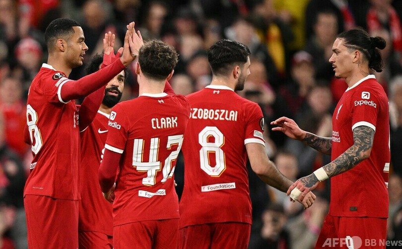 【3月15日 AFP】サッカーヨーロッパリーグ(UEFA Europa League 2023-24)は14日、決勝トーナメント1回戦第2戦が行われ、リバプール(Liverpool FC、イングランド)は6-1でスパルタ・プラハ(Sparta Prague、チェコ)に大勝し、2戦合計スコア11-2で準々決勝進出を決めた。