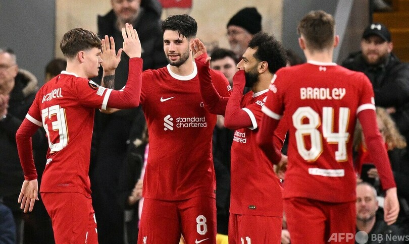【3月15日 AFP】サッカーヨーロッパリーグ(UEFA Europa League 2023-24)は14日、決勝トーナメント1回戦第2戦が行われ、リバプール(Liverpool FC、イングランド)は6-1でスパルタ・プラハ(Sparta Prague、チェコ)に大勝し、2戦合計スコア11-2で準々決勝進出を決めた。