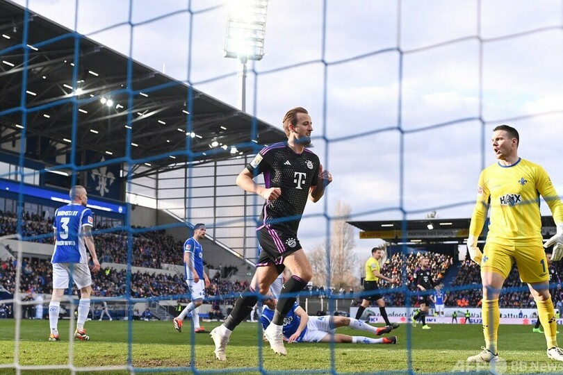 【3月17日 AFP】23-24ドイツ・ブンデスリーガ1部は16日、第26節の試合が行われ、バイエルン・ミュンヘン(Bayern Munich)は5-2でダルムシュタット98(SV Darmstadt 98)に大勝。ハリー・ケイン(Harry Kane)はブンデス挑戦1年目での最多ゴール記録を60年ぶりに更新した。