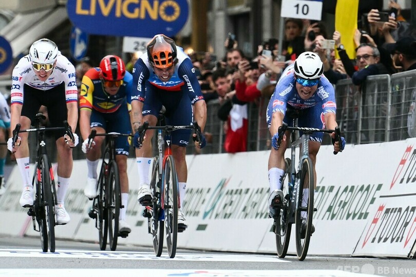 フィリプセンはフィニッシュラインへ向けてバイクのハンドルを投げ出すようにして、チーム・ジェイコ・アルウラ(Team Jayco AlUla)のマイケル・マシューズ(Michael Matthews、オーストラリア)、ツール・ド・フランス(Tour de France)優勝2回を誇るUTE(UAE TEAM EMIRATES)のタデイ・ポガチャル(Tadej Pogacar、スロベニア)に競り勝った。