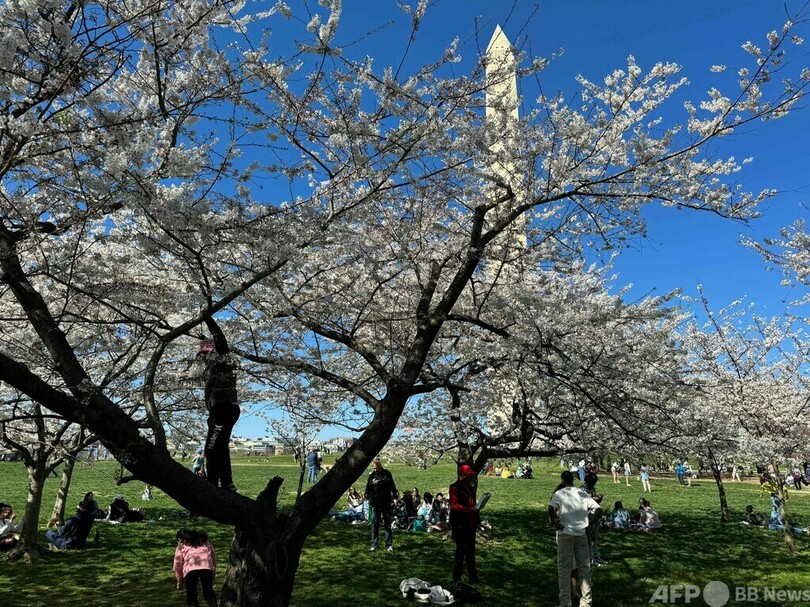 【3月17日 AFP】米首都ワシントン中心部の緑地帯「ナショナルモール(National Mall)」にある貯水池タイダルベイスン(Tidal Basin)の周囲やポトマック川(Potomac River)沿いでは20日の春分の日を控えた今週末、ピンク色に咲いた桜を楽しむ人々の姿が見られた。