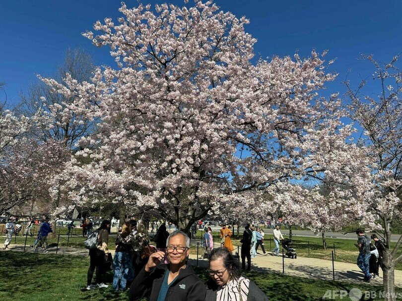 【3月17日 AFP】米首都ワシントン中心部の緑地帯「ナショナルモール(National Mall)」にある貯水池タイダルベイスン(Tidal Basin)の周囲やポトマック川(Potomac River)沿いでは20日の春分の日を控えた今週末、ピンク色に咲いた桜を楽しむ人々の姿が見られた。